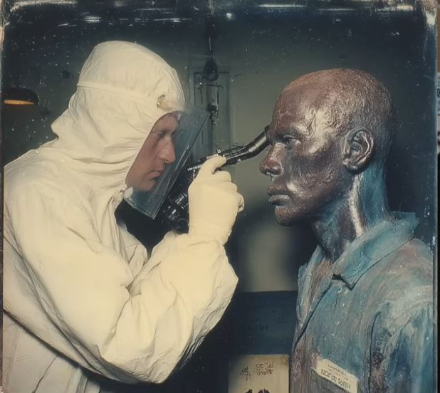 What followed was a decision that, according to sources familiar with the situation, Dr. Vincent did not take lightly. Working quietly with a trusted hospital radiology specialist, she arranged for a non-invasive, after-hours digital X-ray. The equipment, positioned on either side of the figure, emitted a low hum in the empty hall as the scan captured a cross-section of the “wax.” On the laptop, the image resolved not into wire and plaster but into the unmistakable lattice of a human rib cage. The fine bones of the hand, perfectly aligned inside the figure’s outer layer, left little room for doubt: this was a preserved human body.