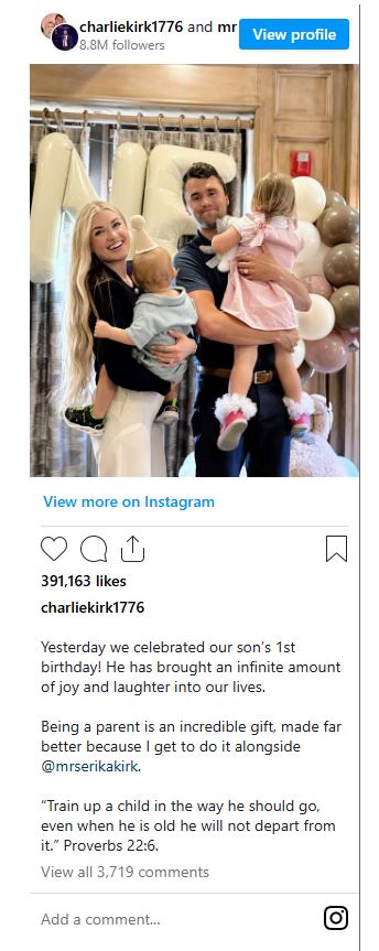 Her official biography speaks to her priorities: “Above all, Erika cherishes her role as the wife of Charlie Kirk and the mother of their precious son and daughter.”