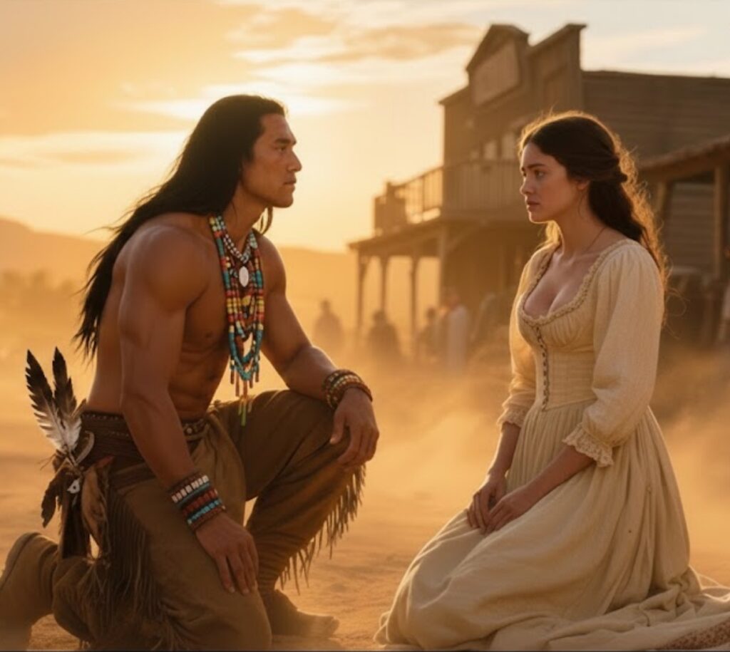 That night, when fever from shock overtook her, she woke to find him sitting beside her, cooling her brow with damp cloths, whispering words in Apache she couldn’t understand. His touch was careful, never bold, his gaze turned away except when necessary. By morning, her fever broke. She opened her eyes to find the first light touching his face—strong, solemn, and handsome in a way she had never noticed before.