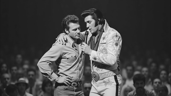 Elvis stood by his side, whispering forgotten lyrics, clapping along, and encouraging him. By the end, the heckler who had come to disrupt became just another man trying his best in front of 20,000 people. The audience gave him a standing ovation—not for his talent, but for his courage.