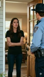 When I opened the door, two police officers stood on my porch, their expressions calm but serious. One of them had a notebook tucked under his arm, the other kept his hand resting near his belt. I tried to smile, but it came out wrong—too forced, too nervous. “This must be a mistake,” I blurted, my stomach tightening. “Is something wrong?”