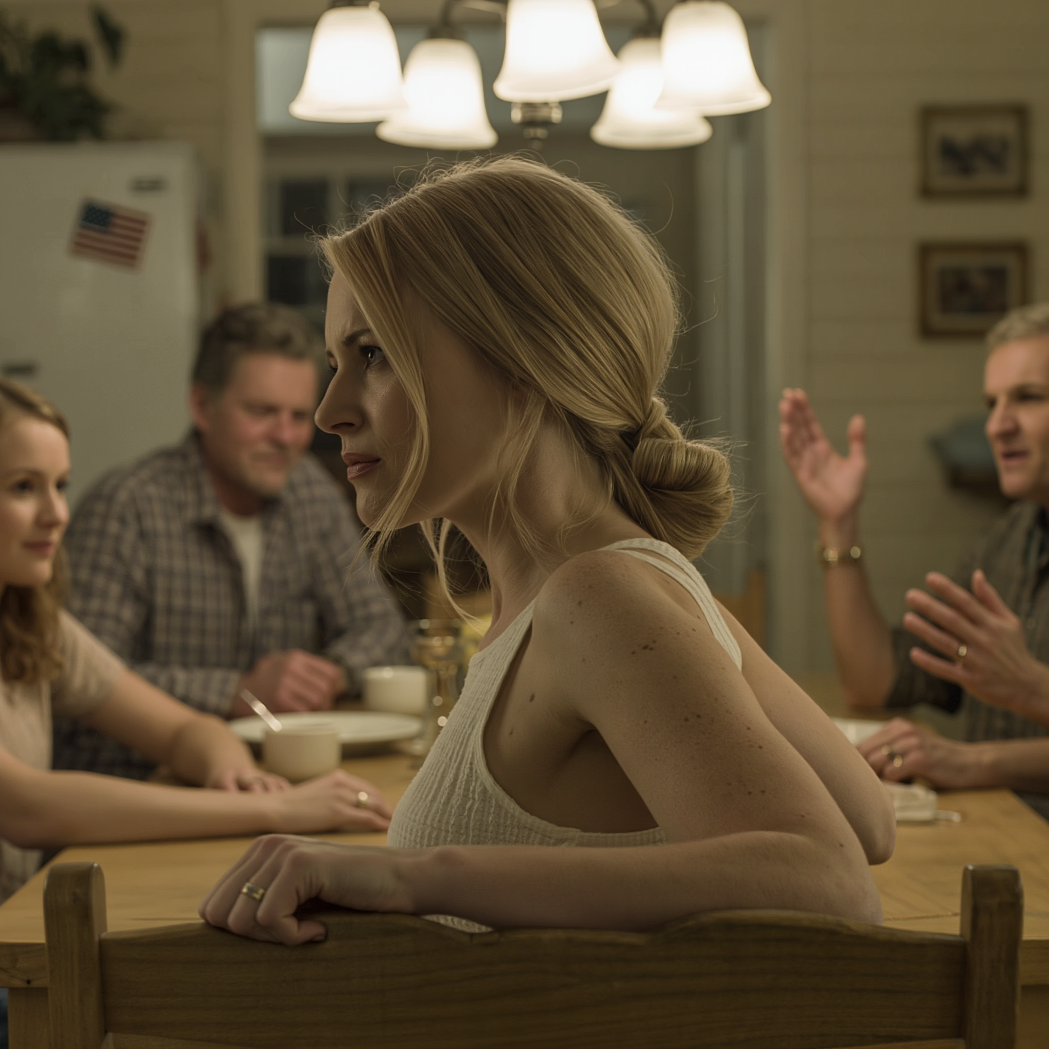 Inside, the house smelled like lasagna—my favorite. Mom only made it for birthdays or bad news. Lily was already there, perched at the dining table in a floral dress, twisting her fingers together. She looked nervous and…excited?