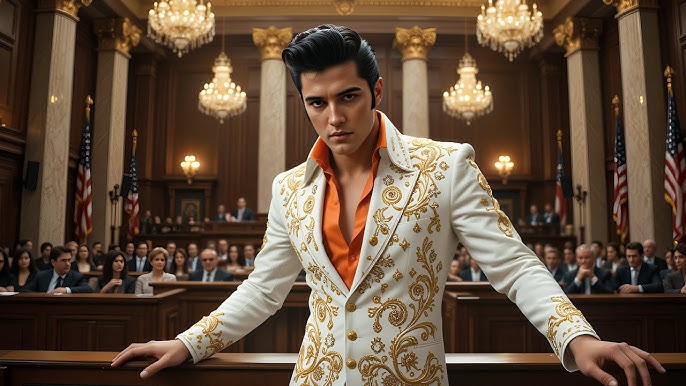 Elvis’s eyes swept the room—reporters, jurors, the judge. There was no defiance, but neither was there submission. It was the stare of a man who carried something heavier than fame: dignity. The silence thickened, every sound amplified. The courtroom, which moments before had roared with laughter, now trembled on the edge of something else.