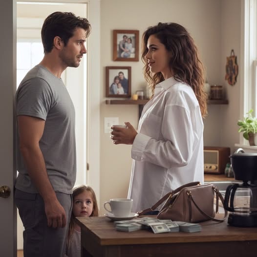 And his world stopped. The woman stood in the doorway, wearing his white dress shirt, the one he’d left on the chair. Her hair was loose, messy, but her eyes were sharp, awake, studying him.