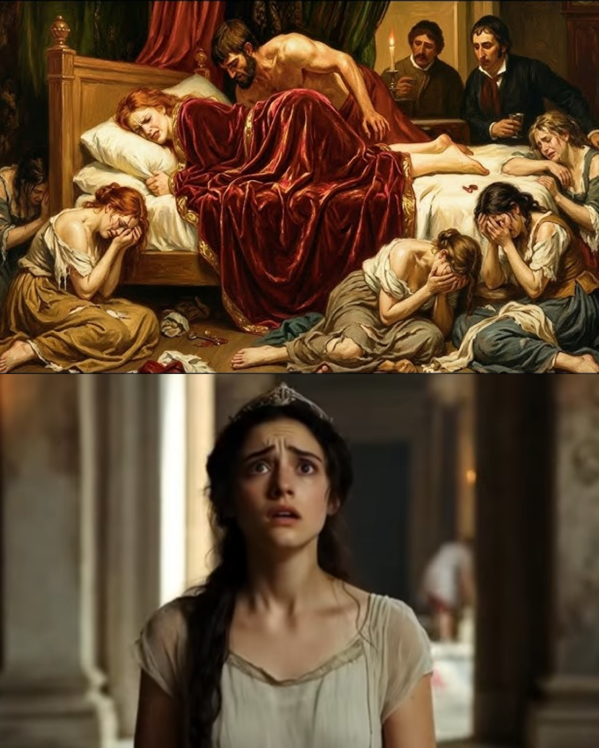 The doctor steps forward next. He’s older. Hair tied. Tools in that duffel bag he guards like treasure. He doesn’t greet you. He doesn’t need to. You’re not a patient. You’re a legal case. He performed your first examination before the ceremony. The one confirming you were healthy. That record is already sealed. That’s the before picture. Now he needs the after. The captain nods. The veterans shift. You stand there, jaw clenched, trying not to think. The doctor works with the cold efficiency of someone checking a shipment of shoes. And here’s the part that feels like a punch. To him, you’re not a kid trembling on your first night. You’re property being verified.