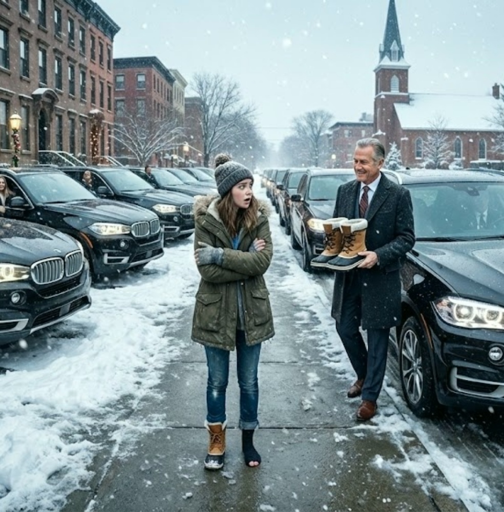 That was when she appeared: an elderly woman, barefoot, her skin turning an alarming shade of ashy purple, her silver hair whipped wild by the wind. She looked like the cold had already claimed her. Without a second thought, I stood up, took off my only warm coat, and wrapped it around her trembling shoulders.